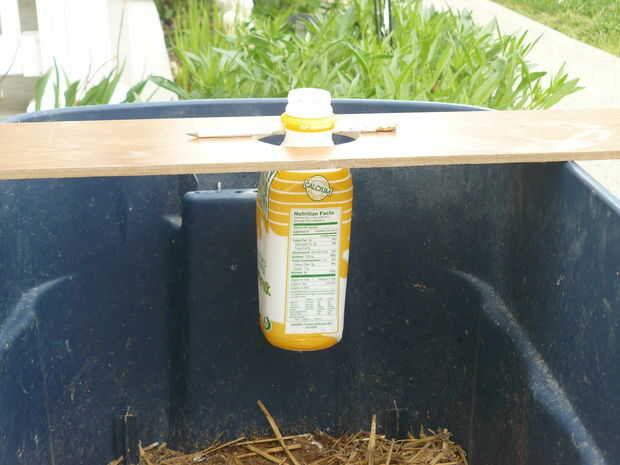 La solución presentada en este instructable es el resultado de mi experiencia durante el año anterior donde he intentado colgar el abrevadero del lado de la bañera. No era ideal porque tendió para hacer la botella magra en un ligero ángulo y causar la palanca en el pezón para colgar en el mismo ángulo. Cuando esto sucede, el pezón constantemente goteará.