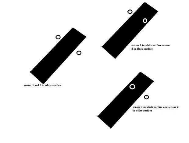 Cuando el sensor 1 en superficie blanca y 2 en negro superficie:
