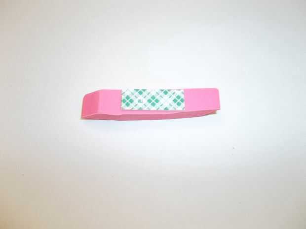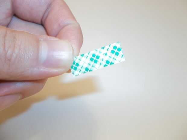 Coloque aproximadamente 1/4" de la cinta de montaje regular en una de las mitades de borrar. Si las mitades no son perfectamente idénticas escoge la más grande la mitad para este paso. Pele apagado el forro y pegarlo a la escobilla derecha en el medio, entre el soporte de la batería y el motor.