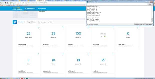 Como dije antes, siempre puede controlar todos los parámetros de la Nube de Mediatek. Por supuesto, usted necesita crear una cuenta en esta nube. Una vez conectado, crear un prototipo (menú desarrollo > prototipo) y añadir tus canales de datos.