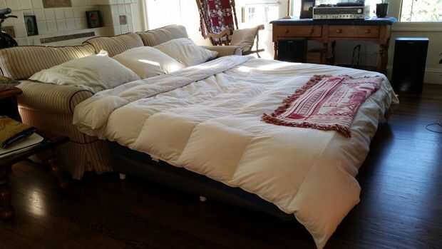 mi novio y yo apenas se movió en nuestro nuevo lugar; Cuando nos encontramos sin un sofá lo suficientemente grande para toda la familia (él, yo y nuestras mascotas), hicimos este sofá descansar en una cama llena de DALSELV IKEA (que ya tenía) y un ca