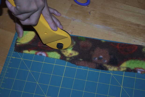 aquí es una gran manera barata para hacer una gran bufanda para tus hijos o hacerlos como regalos para otros!Paso 1: Cuting la tela Usted tendrá que cortar 3 piezas de paño grueso y suave (un color sólido y dos con motivos) mide 50 pulgadas de largo