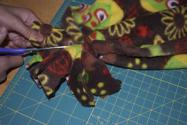 aquí es una gran manera barata para hacer una gran bufanda para tus hijos o hacerlos como regalos para otros!Paso 1: Cuting la tela Usted tendrá que cortar 3 piezas de paño grueso y suave (un color sólido y dos con motivos) mide 50 pulgadas de largo