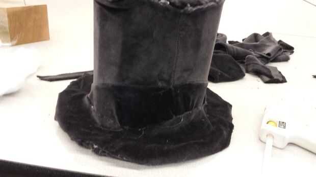 Ahora puede comenzar a usar a alguna tela y que cubre la parte del sombrero que es visible.