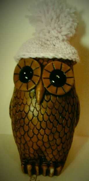 hice un sombrero para mi búho "piggy bank" porque puedo. Le llamé Wilson e incluso tho es un niño todavía le hizo un sombrero rosa luz. Creo que se ve adorable al decirlo yo mismo. (: Esta fue una de las primeras cosas ganchillo sin un patrón. Yo tan orgulloso de mí mismo! (: