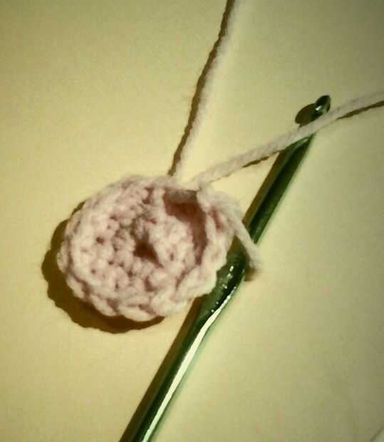 Entonces yo solo ganchillo 6 la puntada bucle y deslizamiento para unirse a. En la siguiente puntada hice un punto bajo. A continuación la siguiente puntada hice 2 crochets solo. En la siguiente puntada hice un punto bajo. Por lo que es el patrón para este