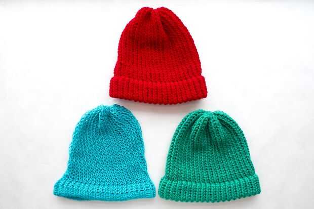 Arriba es una foto de tres sombreros de diferentes tipos de hilados: