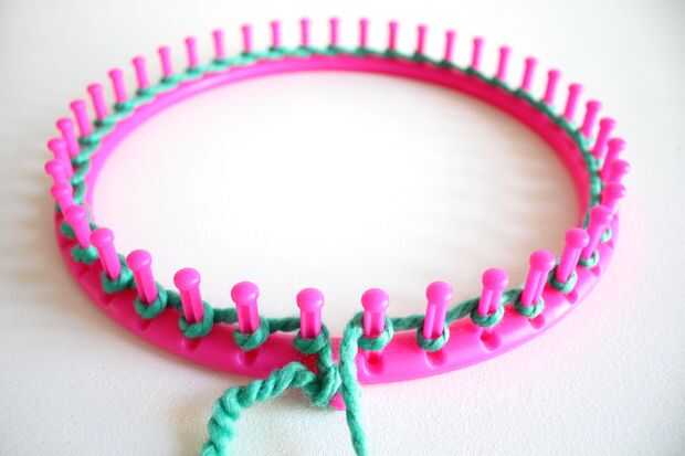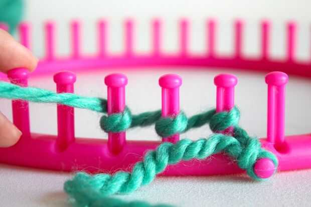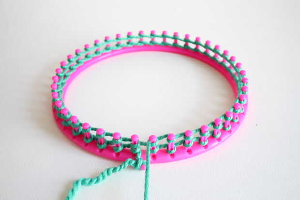 Traiga el hilo detrás de la primera clavija vertical y luego en la parte delantera. Seguir esto todo - empezar en un lado de la clavija horizontal y extremo en el otro lado.