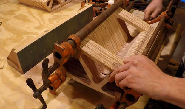 También me gustaría recomendar que pongas cuñas de madera debajo de las pinzas para no abollar la superficie de la madera contrachapada. Usted notará que no me gustó, y mina vino bien. Pero hay una buena probabilidad de que la mayoría tienen algunas abolladuras en la superficie. Así que puede eliminar esta poniendo cuñas debajo de cada abrazadera.