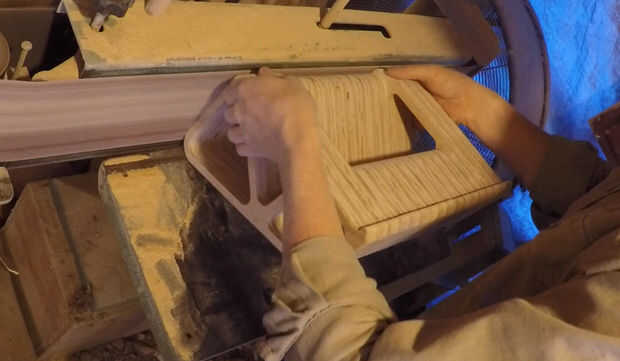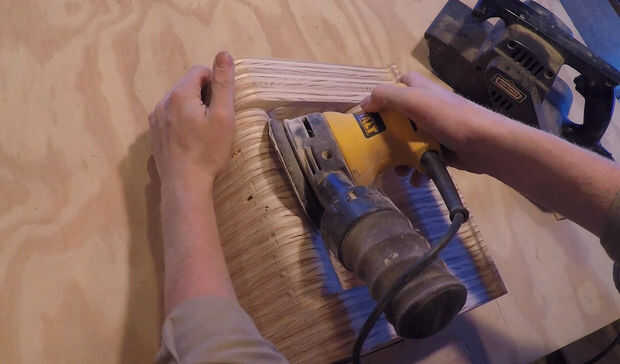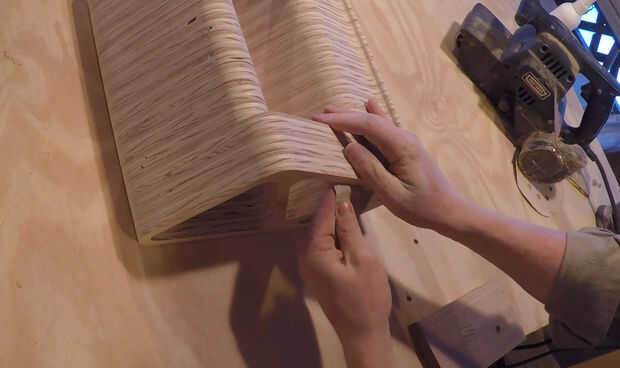 Esto realmente no es tan malo si tienes unas lijadoras de energía. Usé una lijadora orbital para el punto medio abierto y la parte inferior del soporte.