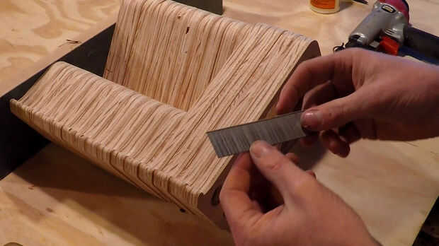 De esta forma, cuando tu clavado te puede empujar sus piezas contra esa plantilla y la tabla y saber que usted está creando un borde cuadrado perfecto.