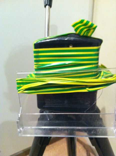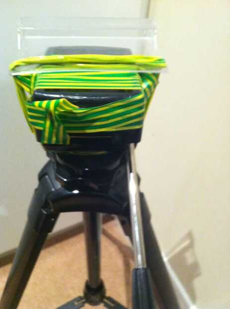 tenía un antiguo atril de "Júpiter" de mentira alrededor de la casa y decidió ponerla a utilizar como soporte de la cámara. Mientras que un nuevo Pod de gorila sería cool, también quería utilizar material libre que podía encontrar alrededor de l