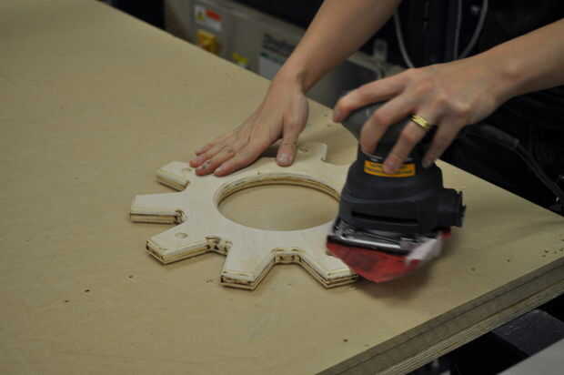 Lijar la superficie del engranaje después porque la madera se astilló un poco de la prensa de taladro de perforación.