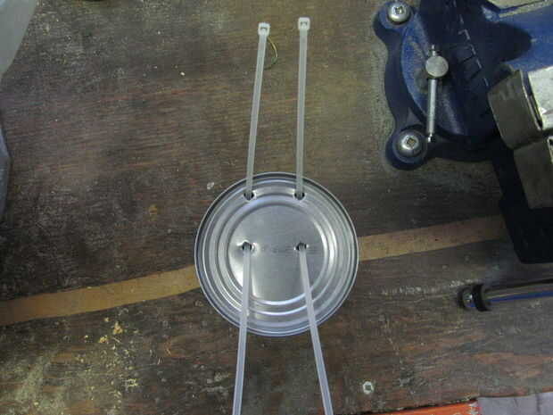 -Utilizar las abrazaderas de plástico para sujetar la abrazadera a la parte inferior de la lata. Si generalmente mantiene su bebida en la mano derecha, coloque la abrazadera como en la imagen 3. De esta manera, cuando instale el apoyavasos en el lado derecho de una silla el eje no poke te.