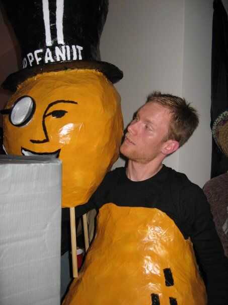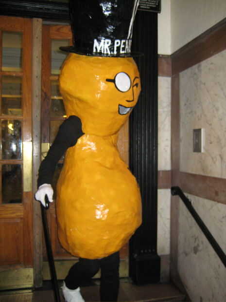 construida de alambre de pollo, maché, arcilla de papel, masilla epoxi y un montón de cintas.Paso 1: Encontrar una forma Una de las partes más difíciles es tomarse el tiempo para obtener la forma básica para el Sr. Peanut.Paso 2: Crear una caña supon
