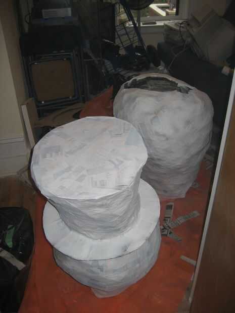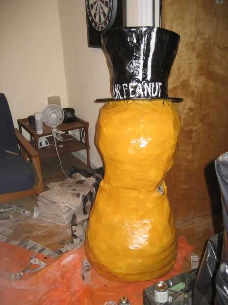 He encontrado alguna pintura en aerosol naranja en la ferretería que era sólo el color correcto para el Sr. Peanut. Cuando se haya secado la imprimación, pintura de aerosol la estructura de todo el cuerpo, excepto el sombrero. No importa si usted tiene alguno en el sombrero, ya que va cubrir esto en pintura negra de todos modos. Puede usar dos capas de pintura anaranjada hasta que usted no puede ver el periódico de papel maché.