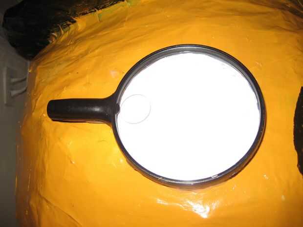 Utilice trazos de lápiz de luz para marcar donde quieres la cara de ser. Luego cortar la boca para que pueda ver de este artilugio (no se preocupe, vamos a arreglarlo, por lo que no ser obvio que estás mirando). Cuando estés contento con la apariencia de la cara, utilice la pintura negra brillante para ultimarlo.