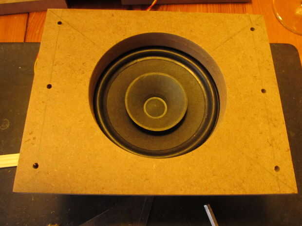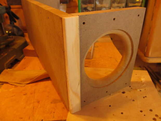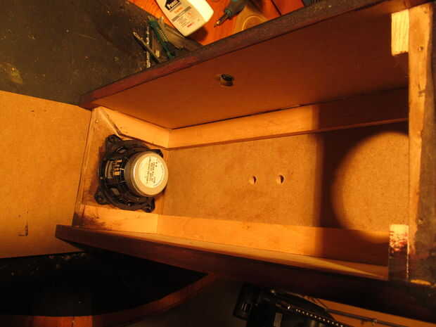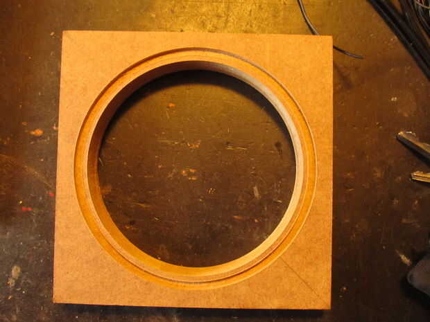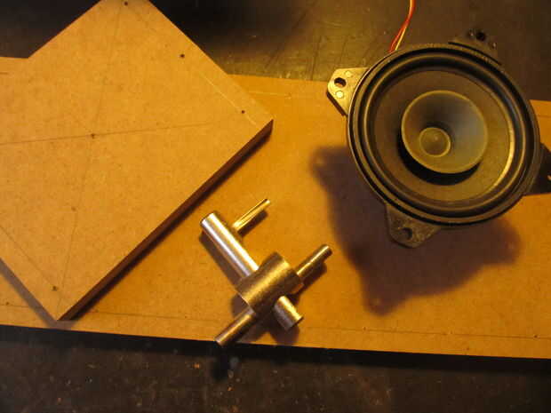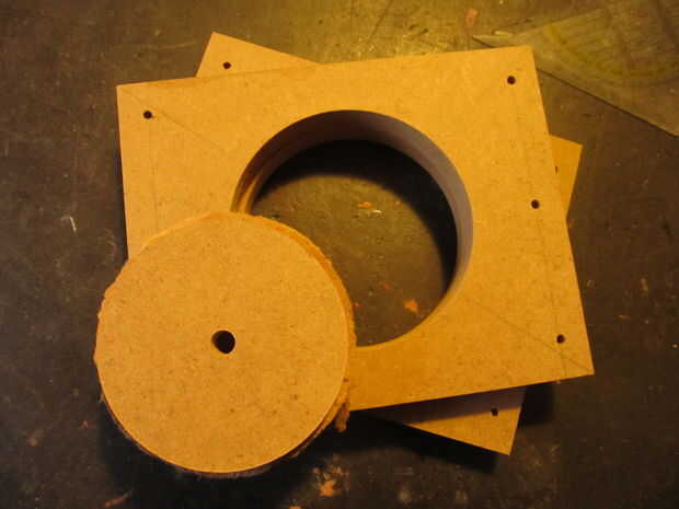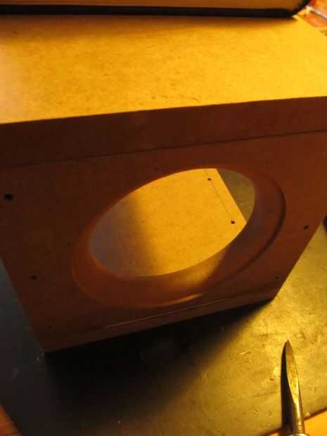 Utilicé un cortador de círculo para cortar los agujeros para los altavoces, el soporte para la cúpula de vidrio y el montaje de "tubo de MP 3".