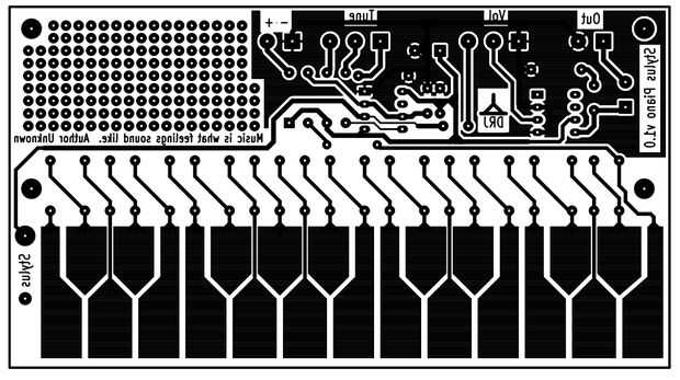 No use el archivo PNG aquí, es sólo para mostrar el diseño - utilizar el archivo PDF para la fabricación de la placa. Como se verá pronto, el archivo PNG es al revés para nuestros usos, el PDF es correcto y hará un tablero hermoso!