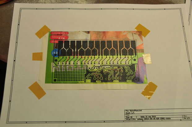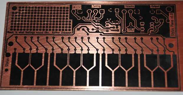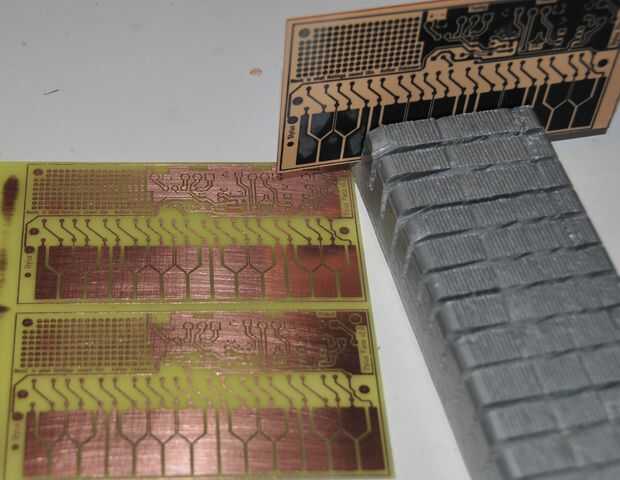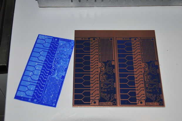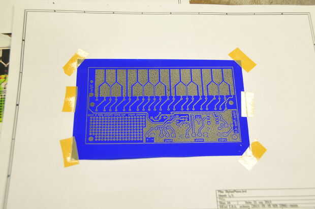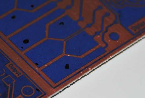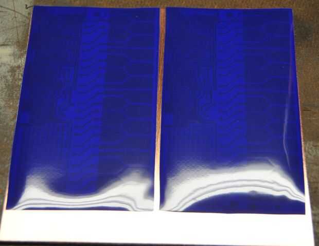 Press-n-peel: Después de que la Junta haya enfriado, he pelado la película y examinó el diseño para cualquier punto donde el toner no enlazar correctamente - sólo usar un marcador permanente para retocar el diseño para que todas las pistas están bien formados. Me parece que el polvo es mi peor enemigo. Si he sido capaz de mantener el taller limpio, las cosas van realmente bien, pero si el lugar es mugriento porque he estado muy ocupado, entonces recibo a transferencias irregulares.