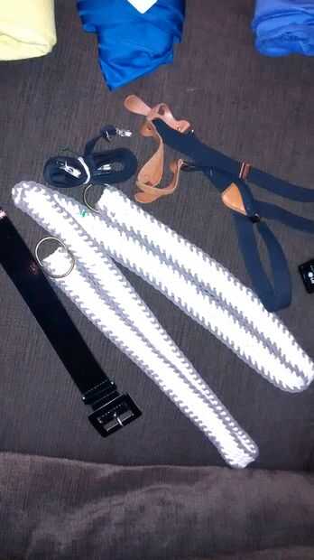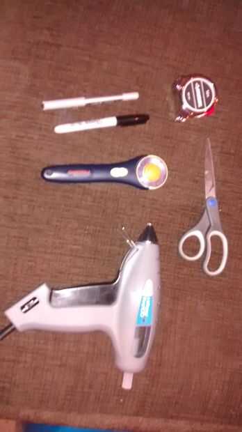 En cuanto a materiales; Tuve algunos espuma polivinílica para construir otro. Era un 4 x 6 y media pulgada de espesor. Una gestión de buena voluntad me anotó un paño amarillo y azul, unos tirantes, correas de piel artificial y un hula hoop de plástico.