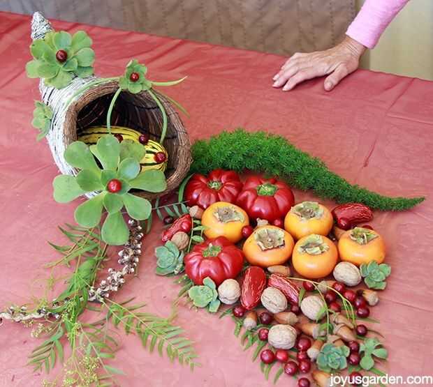 Crecer en Nueva Inglaterra, siempre tuvimos 1 lleno de frutas y nueces para acción de gracias y había conmutado a pino, conos, las bayas y bolas de Navidad. Quería poner un toque moderno en la decoración de esta fiesta y además de usar estacionales producen y alimentaban las mercancías, sólo tenía que incluir algunos de mi amado suculentas.