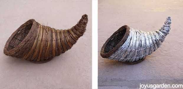 Foto 1- Mi cliente había ordenado la cornucopia, que fue llenada con flores de otoño, para su mesa de acción de gracias el año pasado de 1 de las empresas de flores en línea. Se ejecutó del molino hasta que había cepillado con pintura metalizada plata, tocar el borde, interior y base. Ya tiene un aspecto más actualizado!