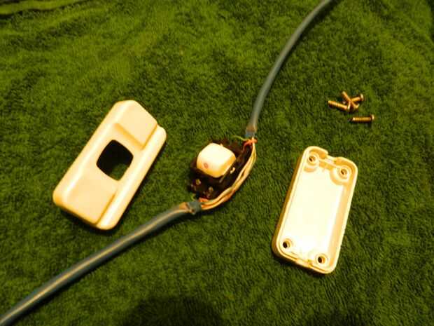Porque es un interruptor de dos polos, he seleccionado las líneas de datos positivos y negativos para interrumpir... Todo lo que necesitaba era abrir el aislamiento hasta que hubo suficiente para cortar las líneas naranjas y verdes sólidas y conectarlos a los bornes del interruptor, luego volver a montar.