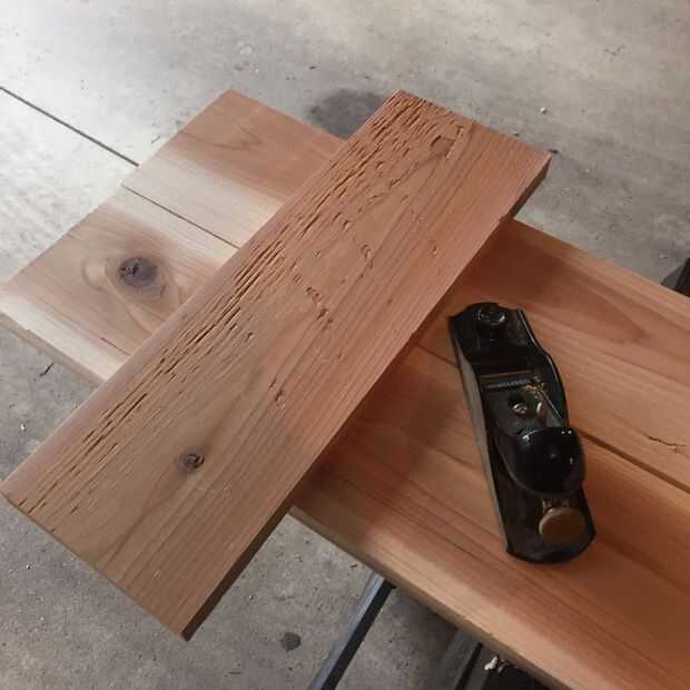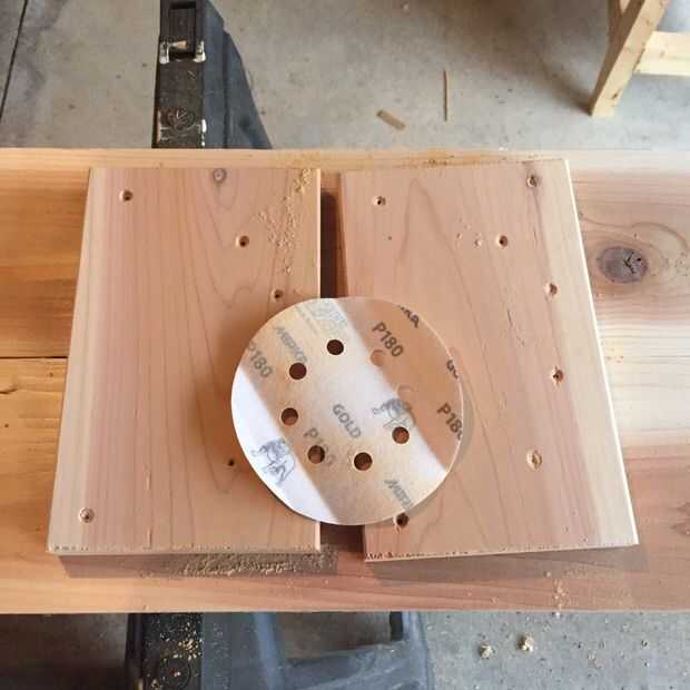 Ahora es un buen momento para apagar cualquier esquinas filosas. Utilicé un plano de bloque, pero lija trabaja demasiado. Mi Consejo tenía algunas marcas del aserradero, así como las marcas de lápiz que hice. Utilicé papel de lija de grano 180 para sacar estos.
