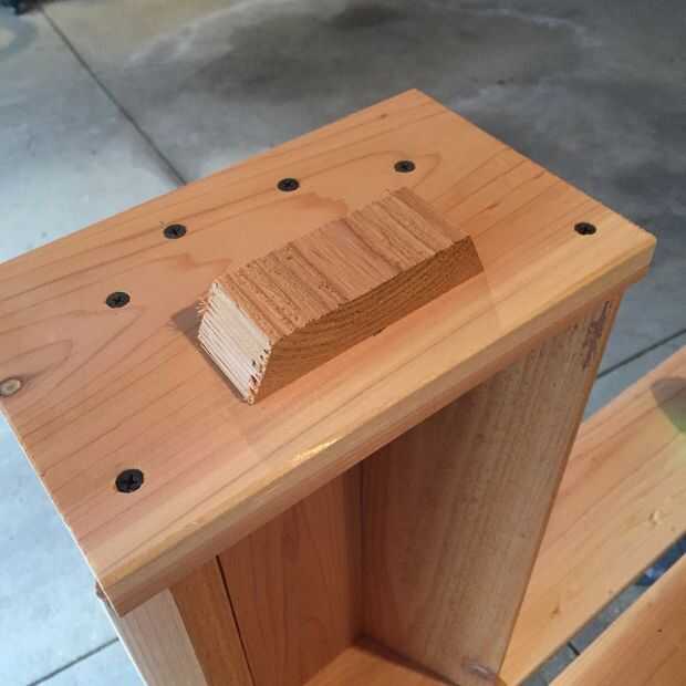 Fijación de las asas es el último paso para el montaje de su jardinera. Asegúrese de haga todos sus agujeros y no apriete los tornillos demasiados, podrían dividir los trozos pequeños de madera de cedro. Estaba parado el plantados verticalmente en mi banco, pero puede hacerlo en el piso, demasiado. Puede usar algunas piezas de madera de desecho (como las sobras de rasgar abajo!) a la manija de la elevación del suelo y apoyar la maceta cuando voltea la maceta.