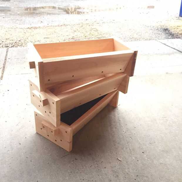 Todo lo que queda es rellenar con tierra y esperar hasta la primavera! He utilizado una mezcla para macetas, alguna perlita probablemente sería una buena idea también y llenar hasta 1" debajo de la parte superior. Voy a intentar plantar hierbas en estos para el verano. Y golpeando a tres cerca de 2 horas. Edificio feliz!