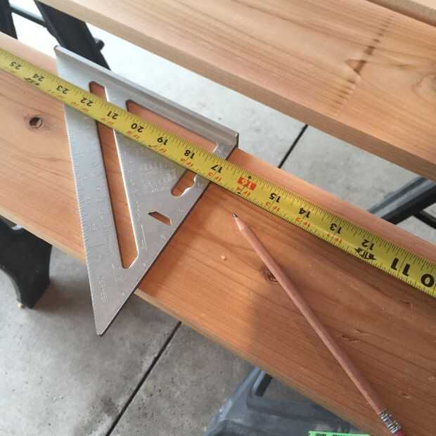 - Marca 17" desde un extremo de la tabla y use su escuadra para dibujar una línea.