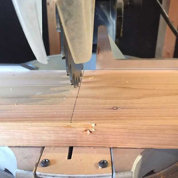 - Línea de su marca en el inglete vio, deje la línea en la pieza que desea mantener.