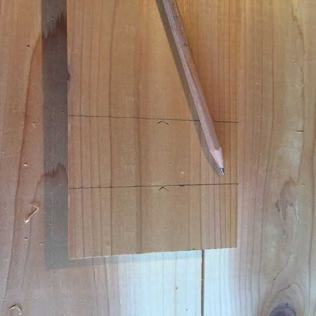 - Utilizando una de las piezas laterales, marque la longitud de la pieza inferior.