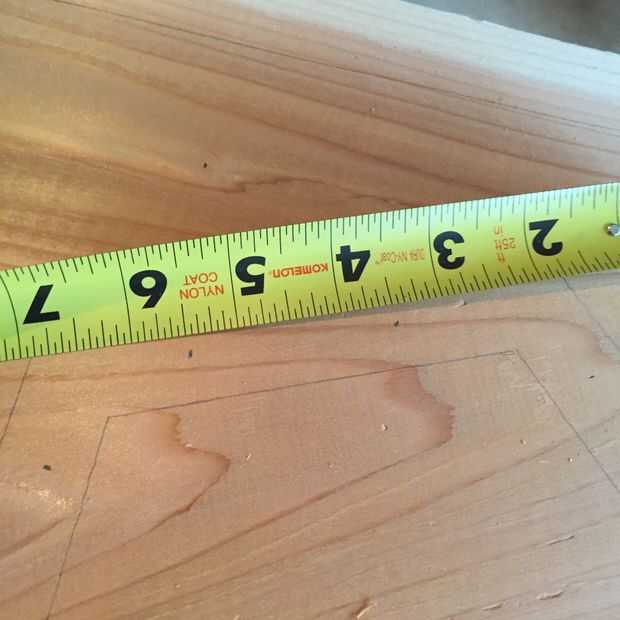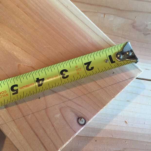 - Con su cinta métrica, marque el centro de los lados de 1" y 4" de la parte superior del extremo.