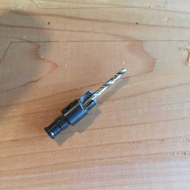 Ahora te perfore previamente los extremos para sujetar a los lados y la parte inferior. Usé un poco de avellanado para un tornillo #8, si no tienes uno, utilice una 1/8 broca.