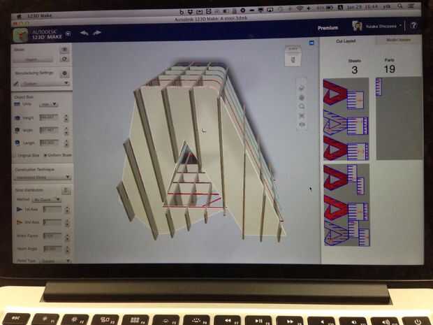 Este taburete es para 3 TenkaizuBudokai (concurso de taburete en Ogaki Mini fabricante de 2014).Material: MDF2.5 m m 300 * 500 m m 18sheets, 6sheets 300 * 300 m mTamaño: H200 * W400 * L400mmCómo hacer:1. cortar MDF con una máquina de corte láser.2. E