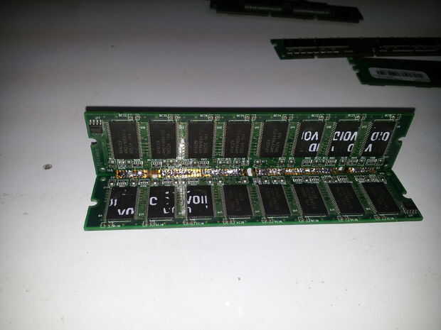 Así es como se deberían de ver los puntos de soldadura hicimos para el tarjetero quede fijo. Pueden pedir ayuda a alguien cercano para que no se mueven las memorias