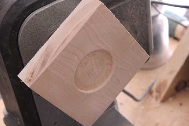 Ahora puede empezar a cortar la madera para la hendidura de chuck. Solo fui 1/4" de grosor y 2-1/2" de diámetro.