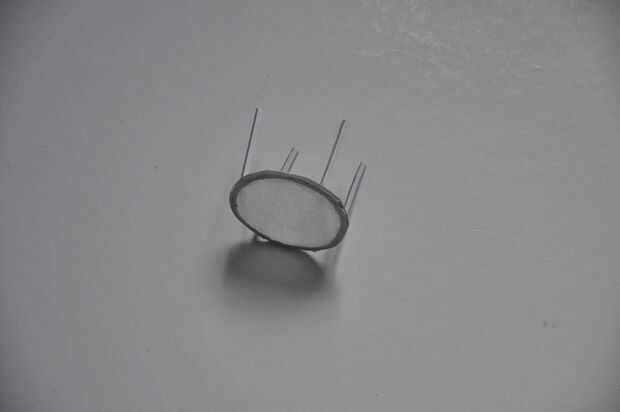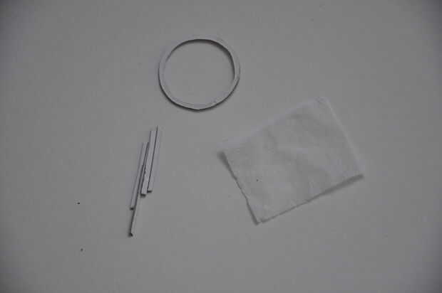 Luego, se corta un anillo fino de cartón y en eso anillo de que algún papel de tejido fino se pega se trata de difundir la ligt para no ver puntos brillantes 6. El anillo obtiene 4 patas para que se asemeja a una mesa y las patas de esta mesa luego se pegan en el disco con el papel de aluminio.