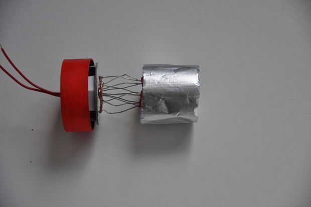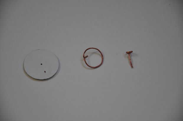 Los anillos están montados sobre un pequeño disco de cartón con un diámetro igual al diámetro interno del tubo posterior. Un pequeño alambre se suelda en cada plomo cobre.