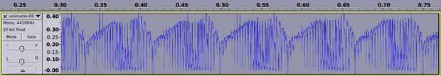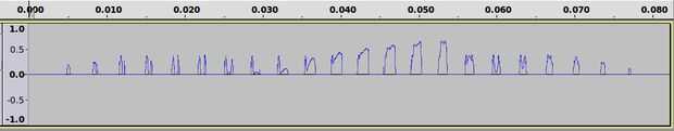 Pero más importante el programa también devuelve el archivo wav todo desde donde se puede ver un fragmento a continuación. Fácilmente puede reconocer los marcos separados. (zoom)