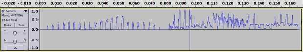 Buscar en el cuadro del archivo de audio en el audio, puede reconocer claramente el lado izquierdo del anillo en los picos dobles! (Saturn.wav)