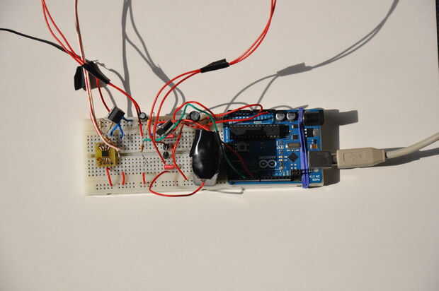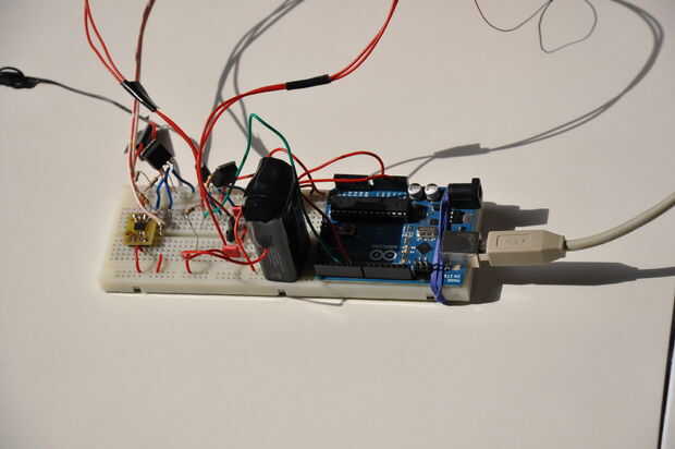 Por lo tanto, cuando el aluminio sobre el disco toca los dos cables, se hace contacto que tira hacia abajo de la entrada digital de arduino que se puede leer.