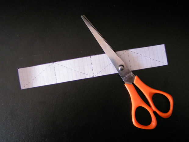 Doble cuidadosamente a lo largo de cada línea de puntos, Valle y montaña del doblez, para que el papel dobla fácilmente en ambos sentidos.
