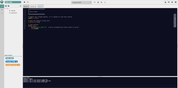 6. Para que la Junta se pueda utilizar, necesita a Viperize . Viperization es el proceso de instalar la VIPER VM (Virtual Machine) en un tablero. El proceso se puede iniciar haciendo clic en el botón dedicado en la barra superior de VIPER IDE.