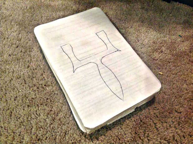 También es muy probable que tendrá una plantilla de tallar su Honda de. Yo sólo libre mina en papel utilizando una regla como guía. También se puede descargar, pero quería mi slinghshot para ser personal. A continuación, copiar la plantilla para que tenga 2 o más plantillas de slingshot. Use cinta para fijar estos en la parte delantera y trasera de su bloque de espuma de poliestireno. Tuve que cortar una plantilla para dar cabida a la sección extra gruesa del bloque donde la empuñadura iba a ser.