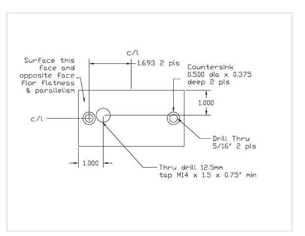 Aviso que se hace referencia a las dimensiones posicionales de los orificios para el M8 x 1,25 SHC de la línea central del bloque. Esta decisión fue tomada para producir una apariencia simétrica.