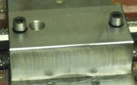 Coloque el bloque de la canalización vertical sobre los agujeros roscados en la diapositiva cruzada. Observe la posición de la M14 x 1,5 agujero roscado. Comienzo de la mano la M8 x 1,25 SHC para 2-3 revoluciones. Apriete bien la SHC. Armario de hilo de uso azul (fuerza media) si se desea.