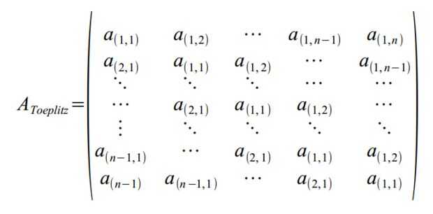 Visualmente la matriz diagonal de n era algo familiar para mí, era el patrón fascinante, que me recordó a los devanados de un tornillo o una pasta de fusilli de espiral. Puedes ver cómo se estructura una matriz diagonal completa, es también conocida como matriz de Toeplitz. Como se puede ver es una compleja matriz n-dimensional, pero parece sencillo.